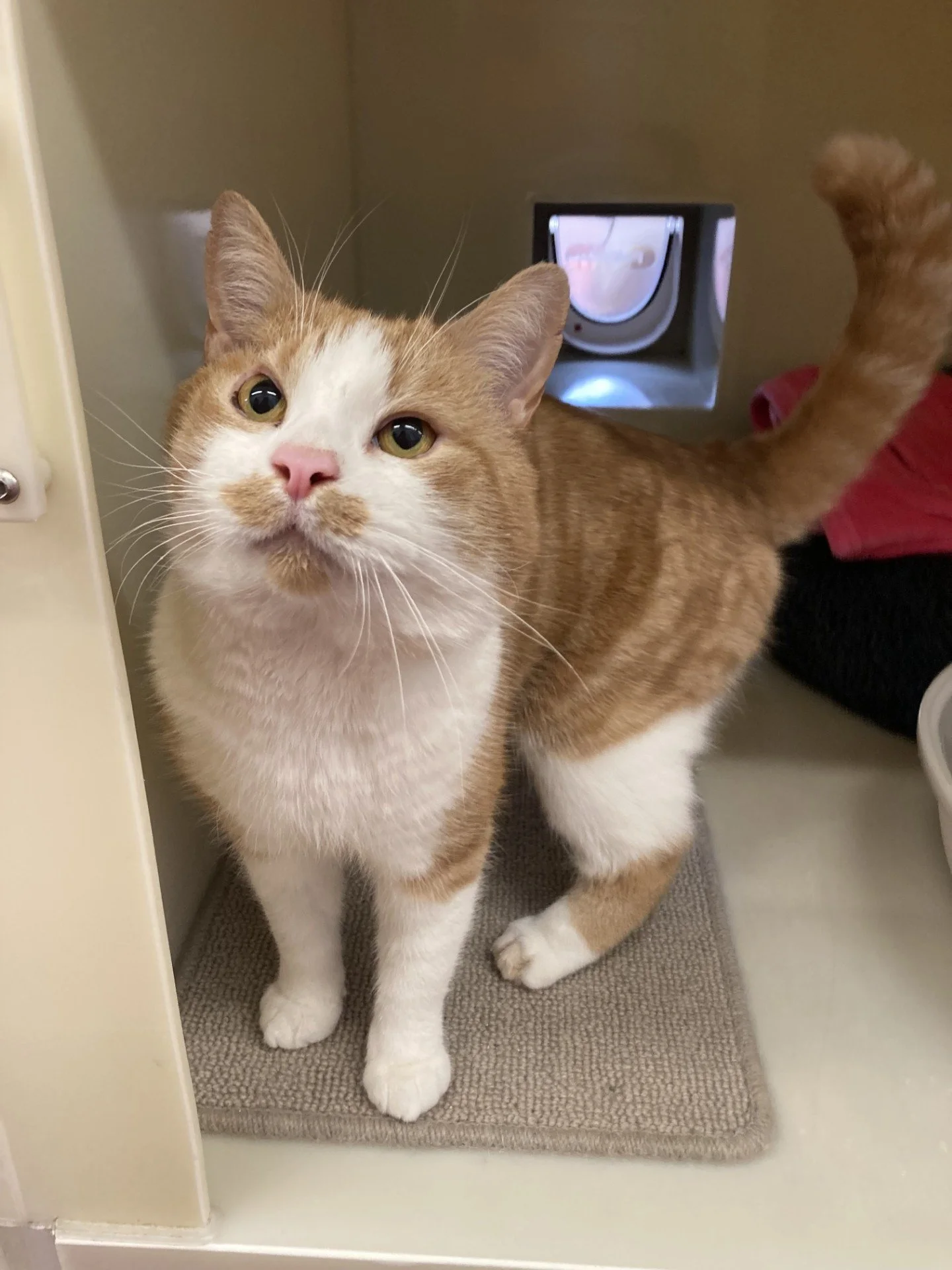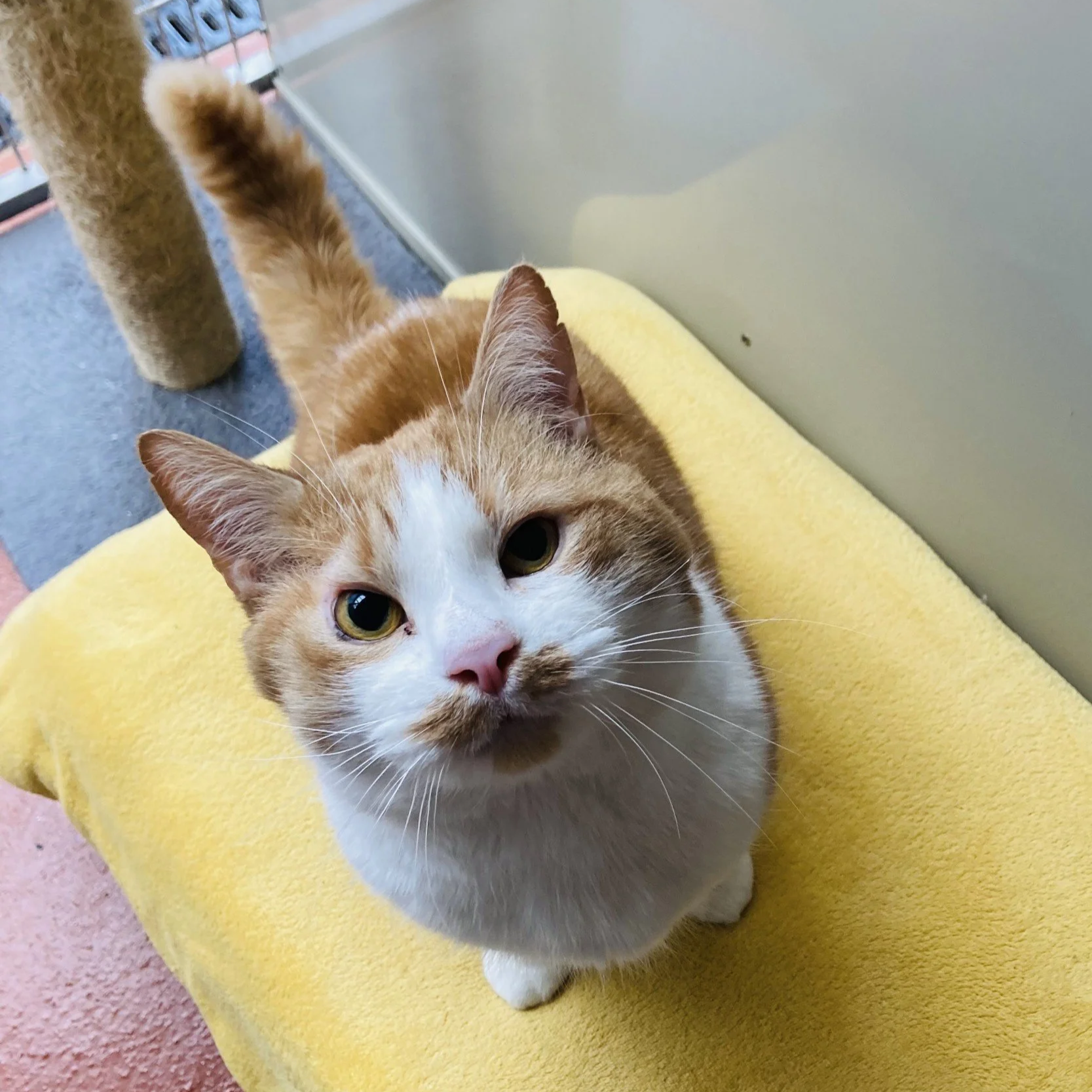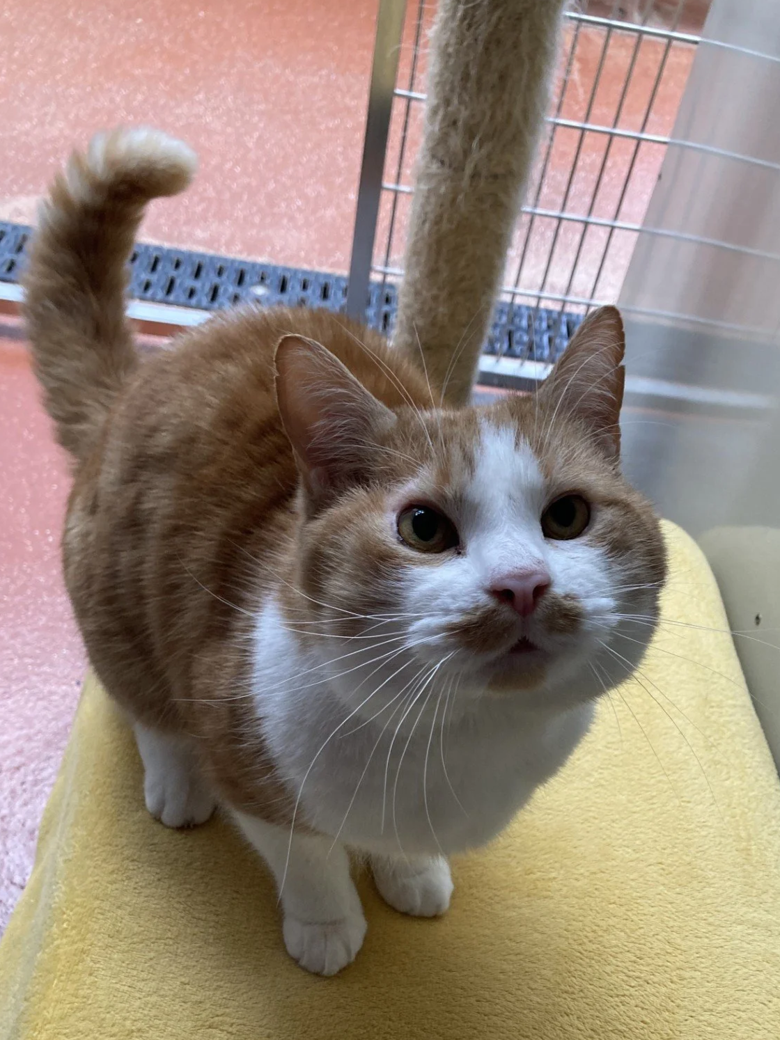 (Note from my carer as she knows I won’t say it: Gingey did come to us a little overweight so is currently on a ‘light’ food and has been on a diet, he has done well and is now a good weight. But his adopters will need to be aware that he will make out that he is hungry all the time, and try to steal food! He is not hungry all the time and does not need to be eating every hour of the day (sorry Ginge!) Puzzle/slow feeders do help, although Ginge doesn’t really appreciate them haha)