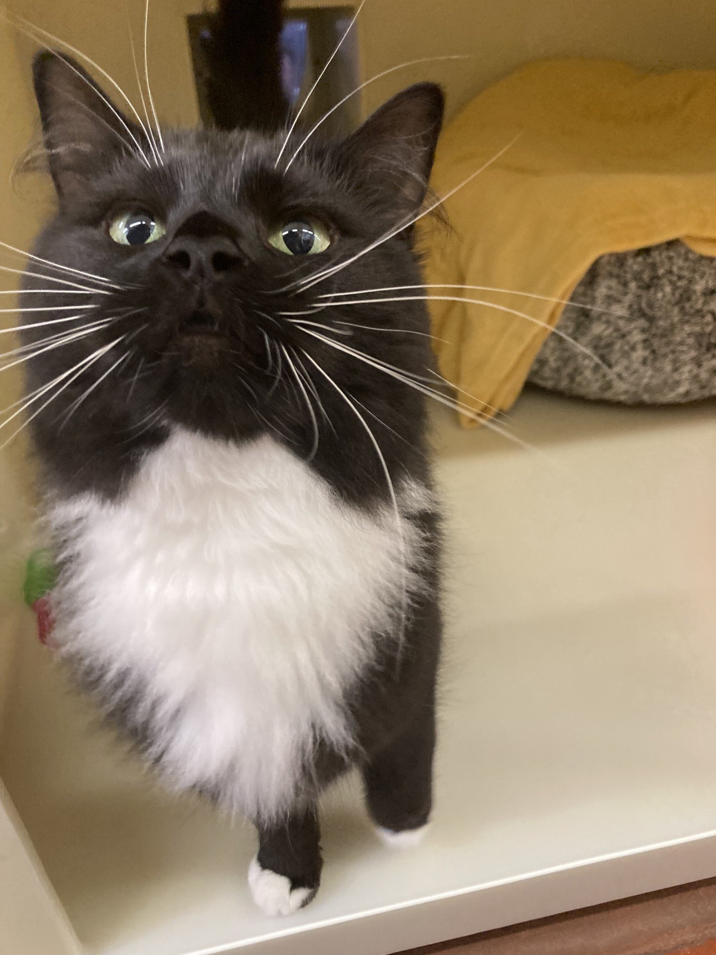 I am a very chatty girl who loves to shout at the humans, just to make sure they know I’m there and don’t ignore me! Nobody is allowed to ignore me. I just have to have fuss and attention whenever I demand it, but will also just chat to you because I can and I like the sound of my own voice. I enjoy cuddles and sometimes even a pick up cuddle if I am in the right mood, however I will let you know with a swipe and a glare if I have had enough attention and want you to leave me alone. In general though, I am a lovely friendly girl.