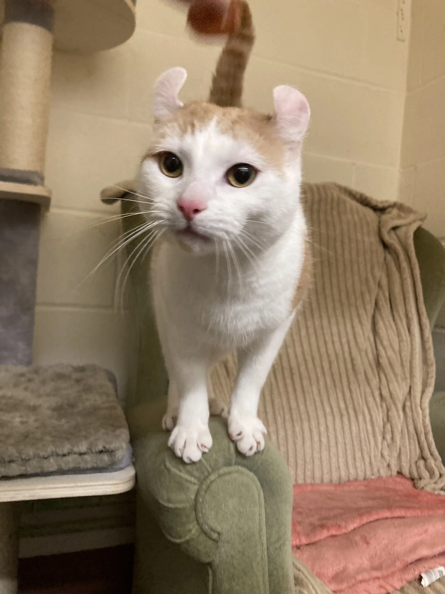 I came to the sanctuary with my younger brothers and sisters- they will be looking for homes very soon! We came from a home but our owner could no longer care for us, they didn’t agree with neutering and sadly bred our mommy cat multiple times. I was from her litter in January 2025, the rest of my litter found homes, and then she had another litter just a few months later! It is very lucky that we didn’t start breeding with each other as they could have ended up with lots and lots of kittens.