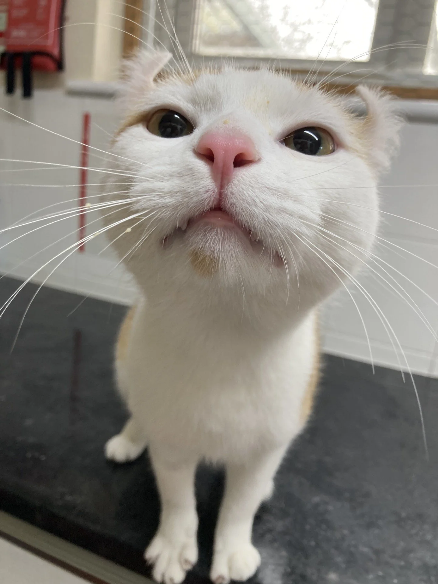 Due to my curled ears, my carers believe that I have some American Curl in my genetics, as do my siblings. It is also known that our mom was a Sphynx. As I am not hairless and do in fact have fur, I should not be affected by the usual skin issues that Sphynx cats can be prone to, however due to my curled ears, there is a slight chance that I may develop ear problems in the future. American Curl cats can be prone to cartilage-related ear issues which could mean I may be more susceptible to cartilage damage (due to weak cartilage) and ear infections. American Curls can sometimes develop joint issues due to weak cartilage, so my carer thinks that raised bowls for my food and water would be a good idea so that I don’t have to bend down as much to eat and drink, and will hopefully help prevent any neck issues when I get older.
