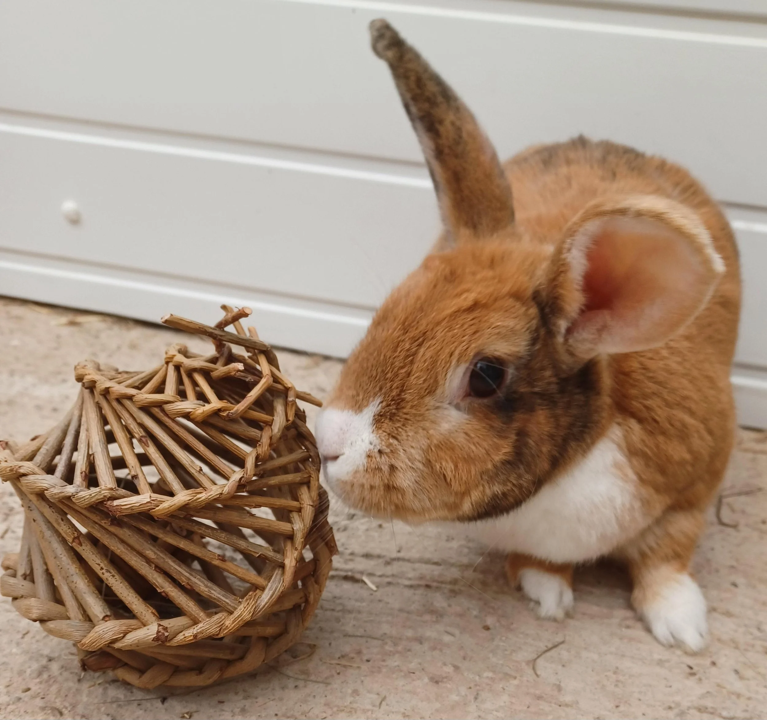 I am quite a shy rabbit at first but once I know you I enjoy attention, playing ball with my favourite people and having a brush. I am very inquisitive and like having plenty of toys, tunnels and boxes to investigate.